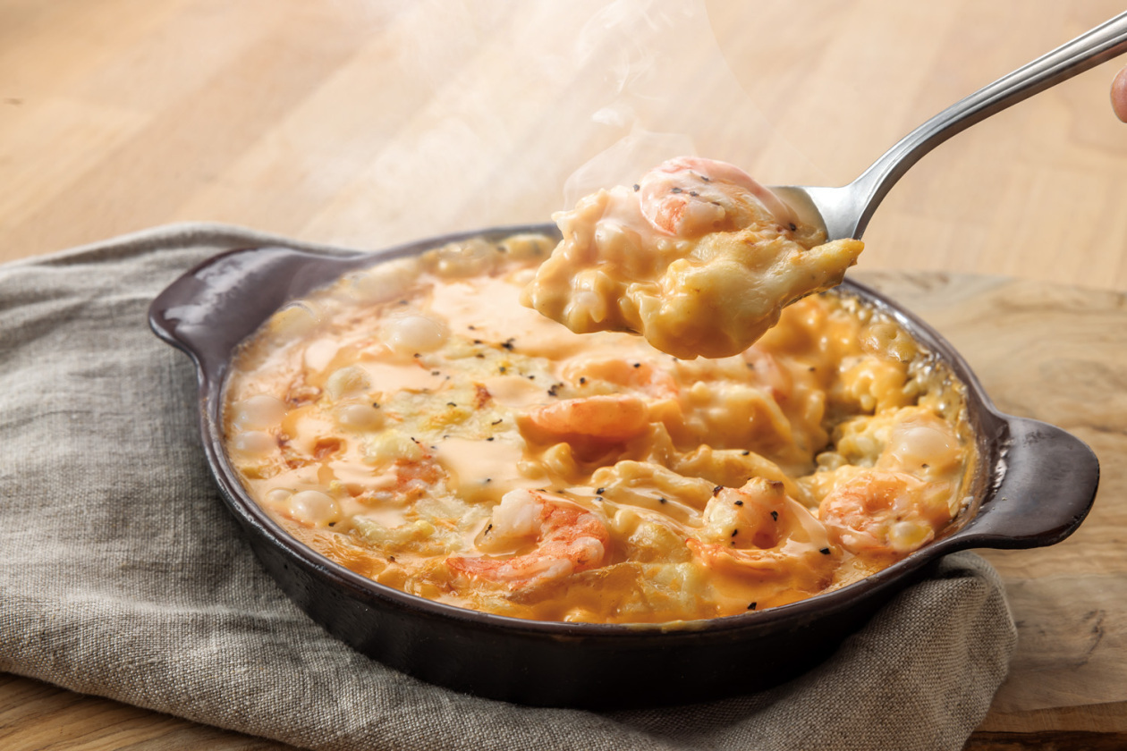 ぷりぷり食感の小海老をたっぷり使用したイセエビソースの旨味が詰まったドリア。