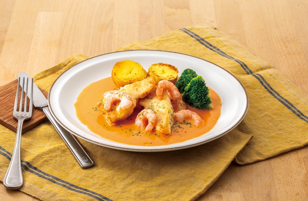白身魚のグリルエビクリームソース