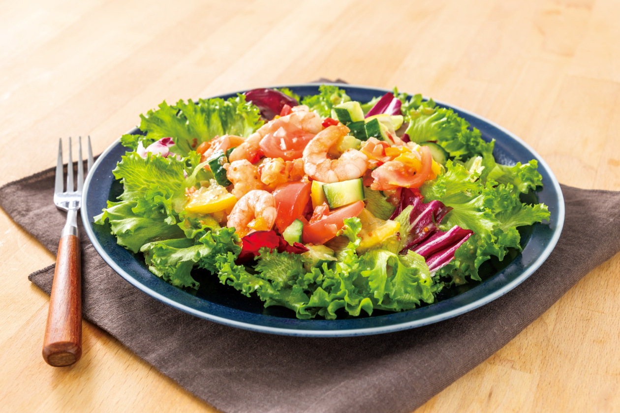 ぷりっとした小海老と彩り野菜を柑橘果汁のマリネ仕立てで。爽やかな味わいが楽しめます。