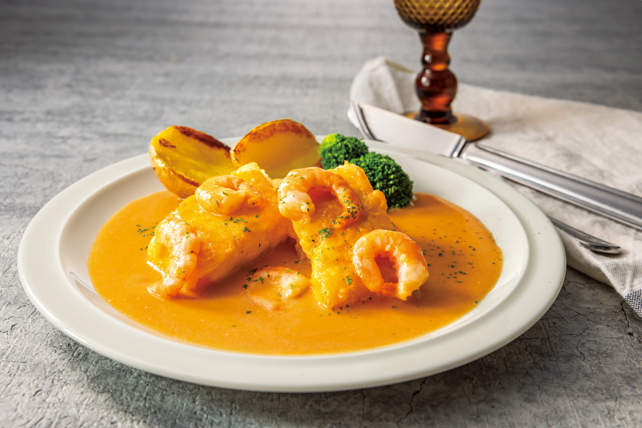 白身魚のグリル エビクリームソース