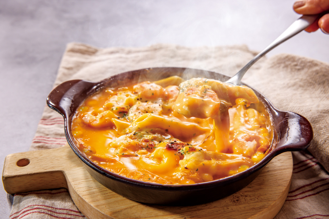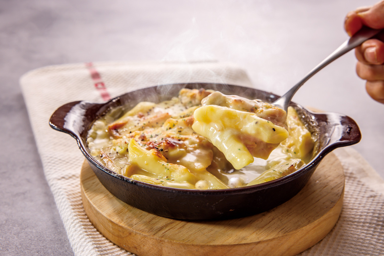 鶏もの肉とベーコンの旨味やコク、玉ねぎの甘さが詰まった王道グラタン