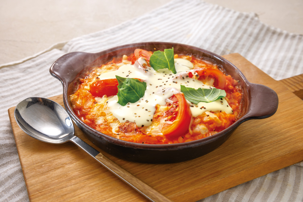 クリーミーなホワイトソースにトマトとバジルが香る贅沢ドリア