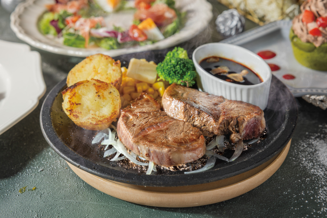 (前菜リースサラダ・メイン主菜2品・パン食べ放題ドリンクバーデザート2名様分)