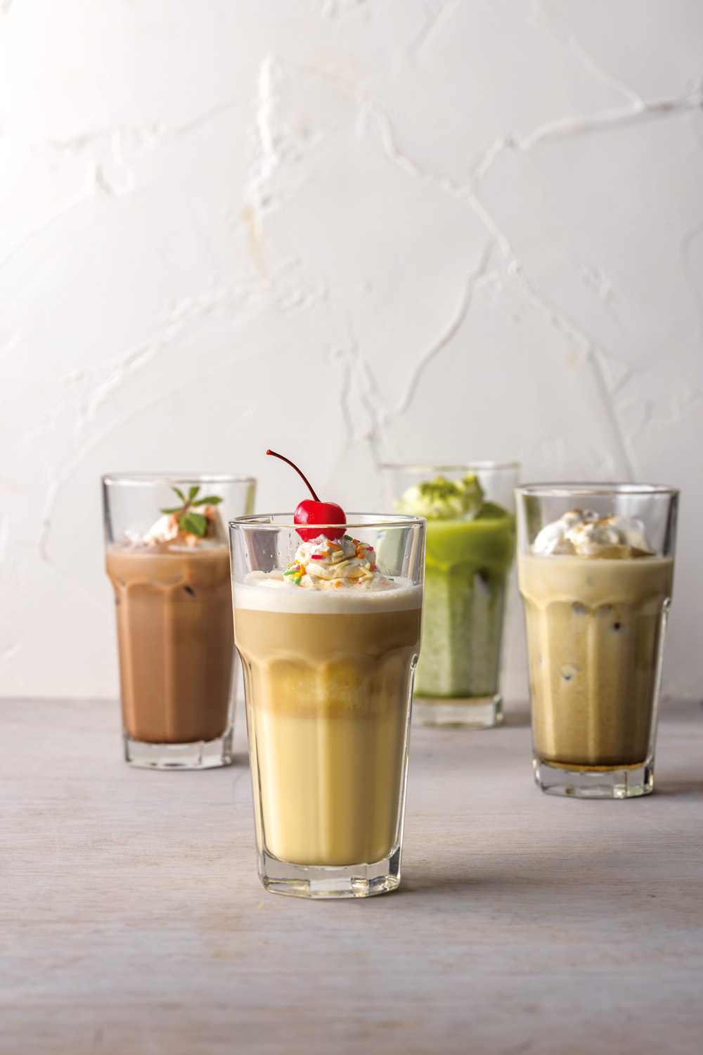 店内で使用している生クリームは、すべて乳脂肪分40%以上の牛乳で手作りしています。 北海道屈指の良質な⽣乳の⽣産地である「浜中町」は夏でも気温が25度を超える日がほとんどなく、冷涼な気候。そこで飼育された乳牛から 「乳脂肪分4.0%以上」の生乳を厳選し、使用しています。