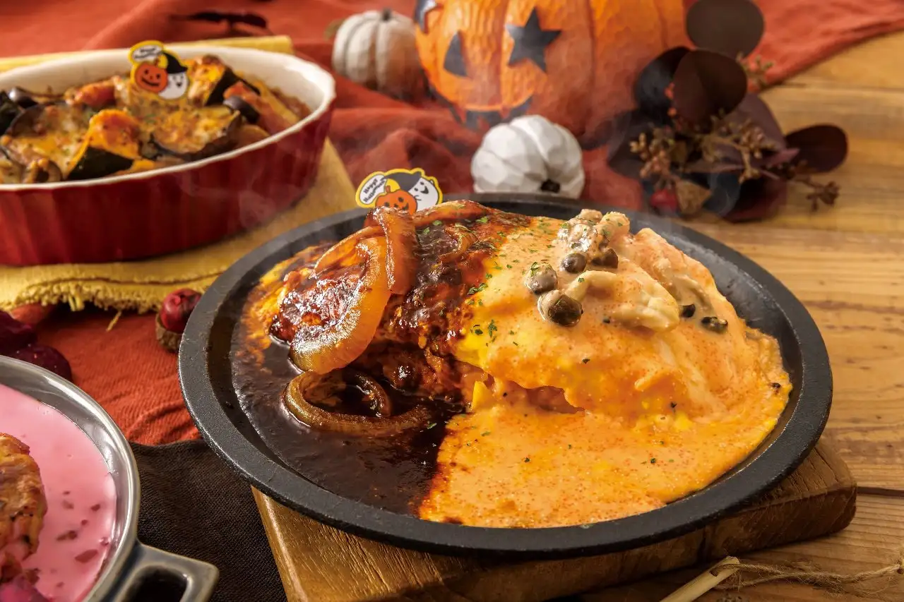 濃厚デミグラスソースと明太子たっぷりクリームソースの2色ソースを使用。