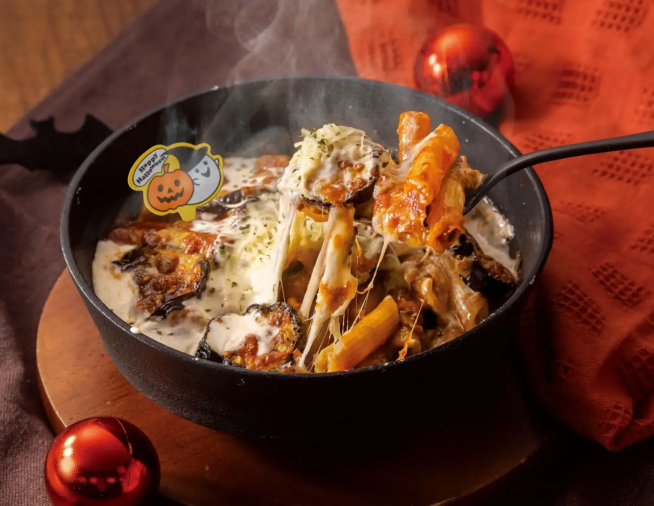 しめじやエリンギ、茄子など秋の食材を使用した濃厚ミートソースグラタン。