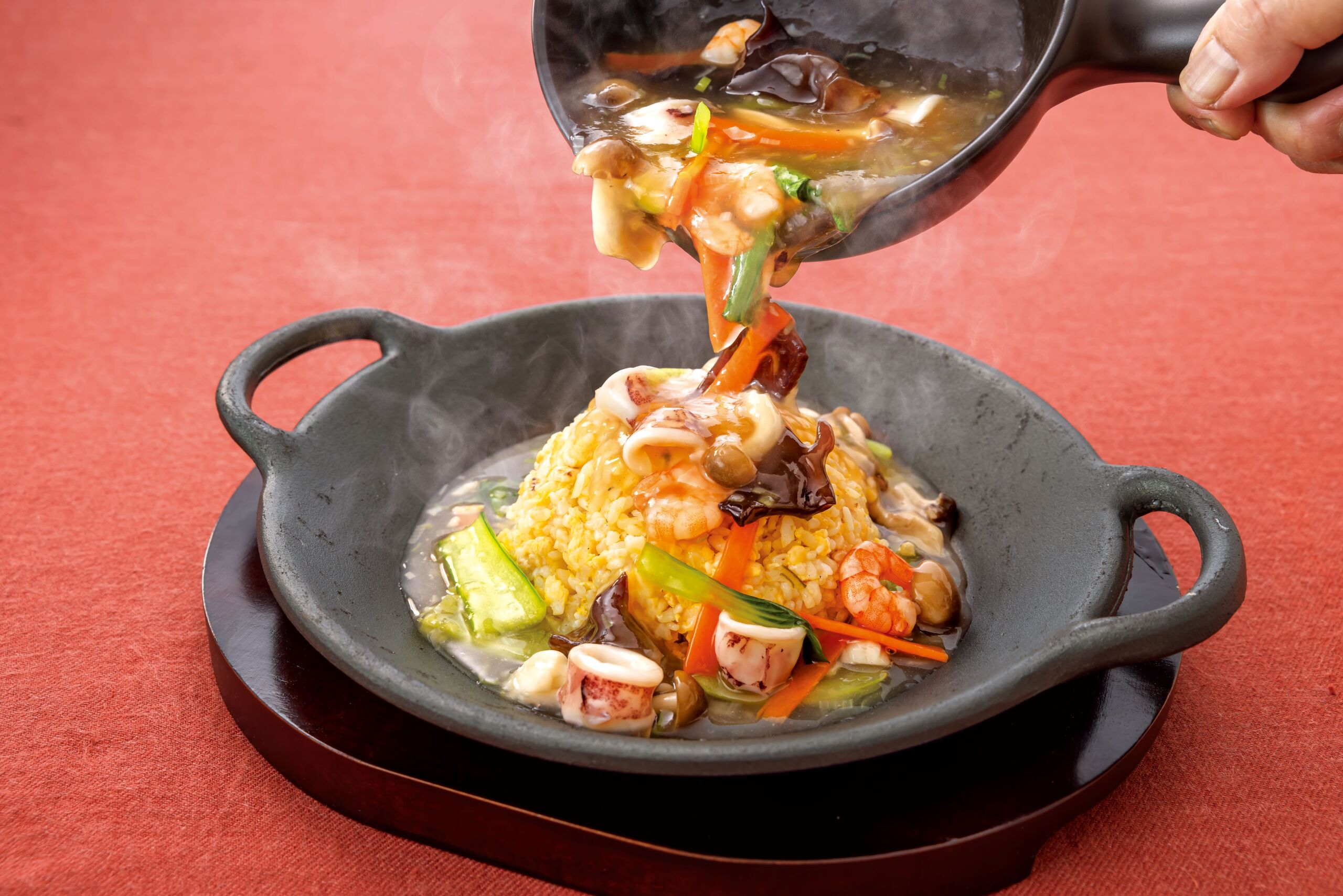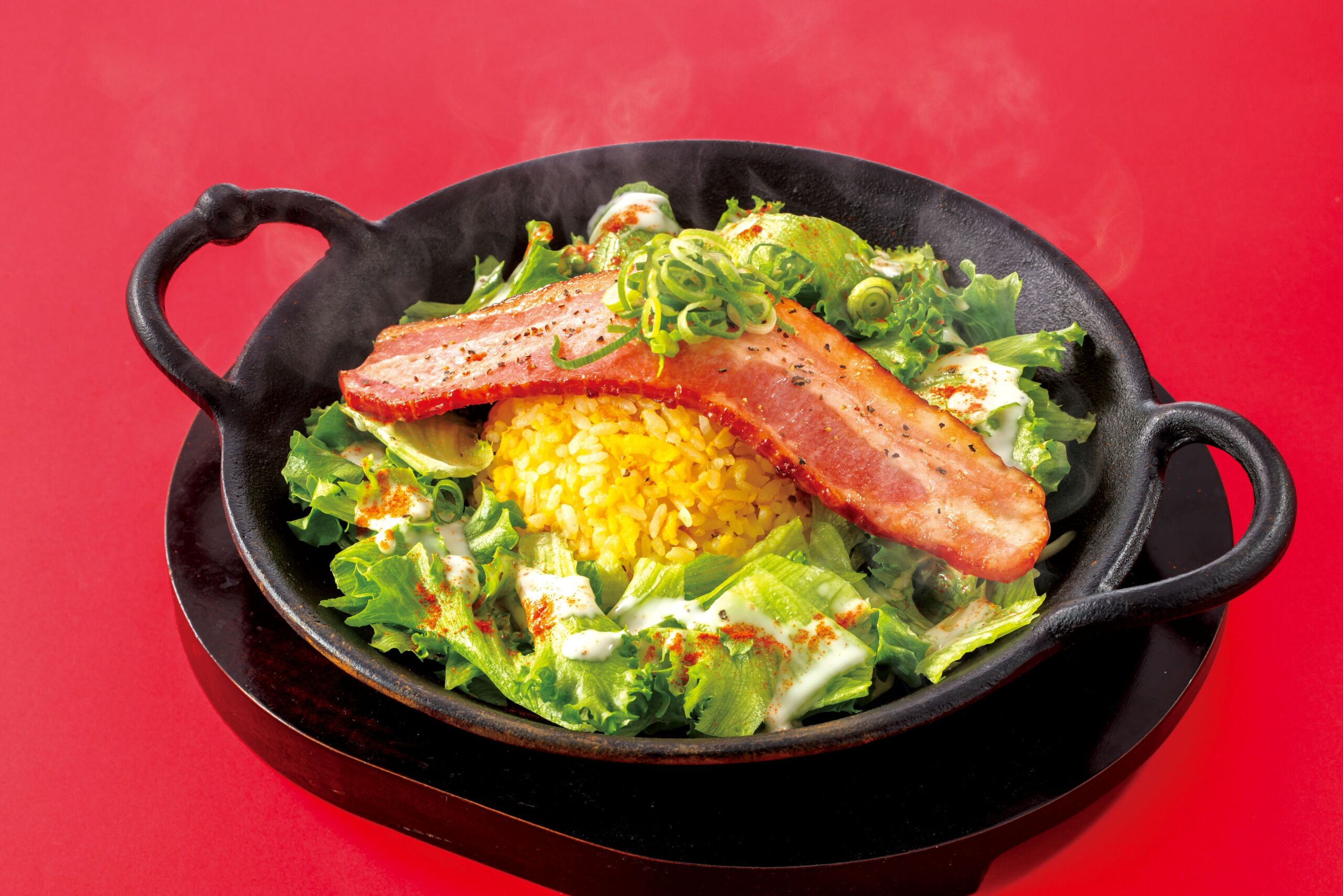 定番の「黄金炒飯」に加え、熱々の鉄板で提供する「海鮮餡掛け炒飯」や「1枚ベーコンを贅沢に使用した「1枚ベーコンのレタス炒飯」がラインナップに加わります。