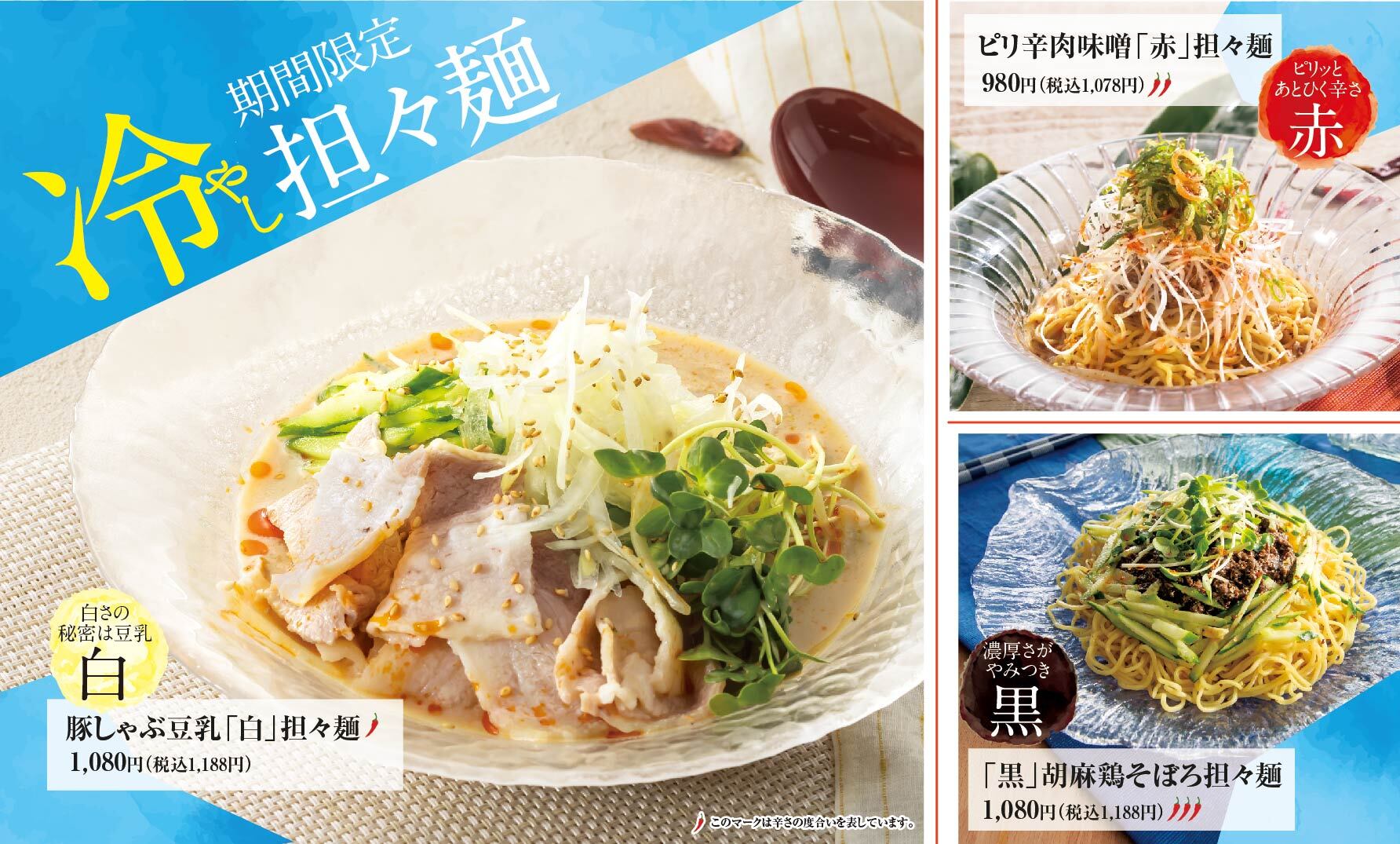 毎年ご好評の期間限定「冷やし担々麺フェア」が4/1(火)より開始いたしました!