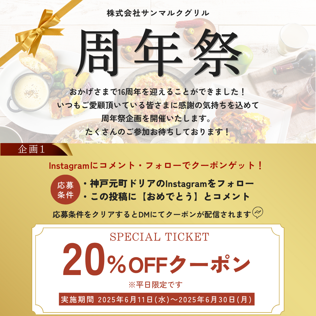 【株式会社サンマルクグリル】は16周年を迎えることができました。