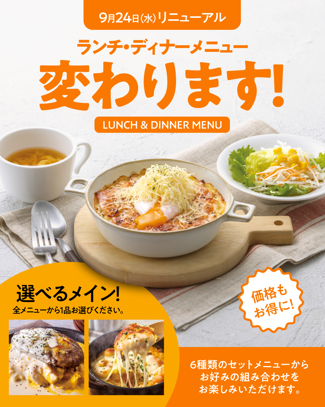 一部店舗限定で平日限定のランチ&ディナーセットが、より自由に、よりお得にリニューアルしました!
