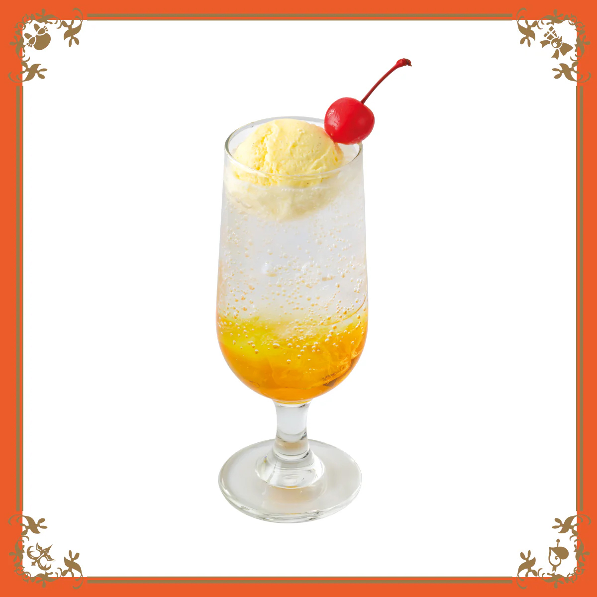 宝鐘マリンの瞳を思わせる鮮やかなオレンジティーに、バニラアイスを浮かべた特製フロート。