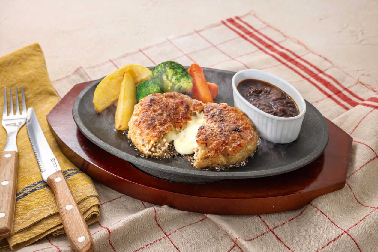 人気のジューシーなハンバーグにとろけるチーズを入れ込みました。