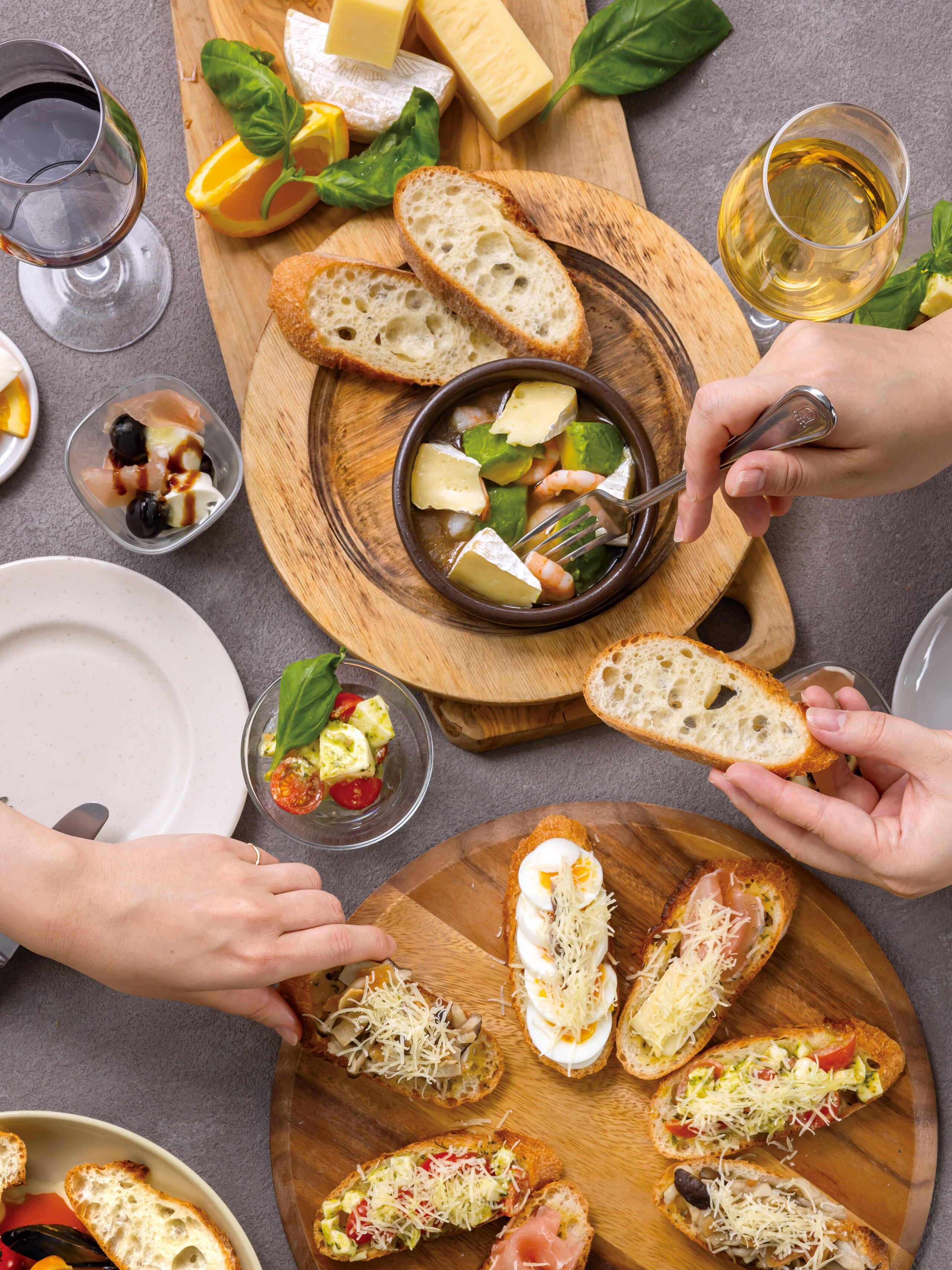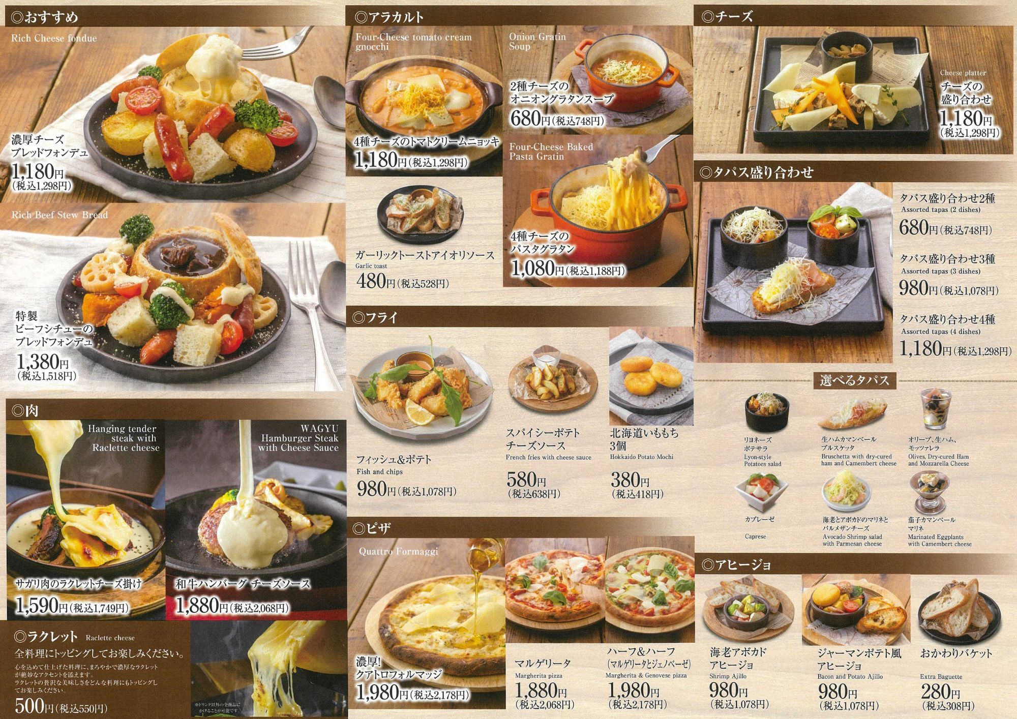 モッツァレラチーズやラクレットチーズなどのさまざまなチーズを使用した料理とお酒を一緒にお楽しみいただけます。