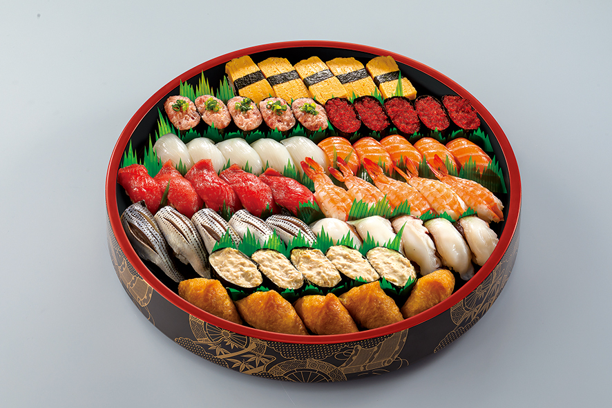 【内容】まぐろ・やりいか・サーモン・かに・白身・光物・赤えび・いくら・ねぎとろ・玉子焼き