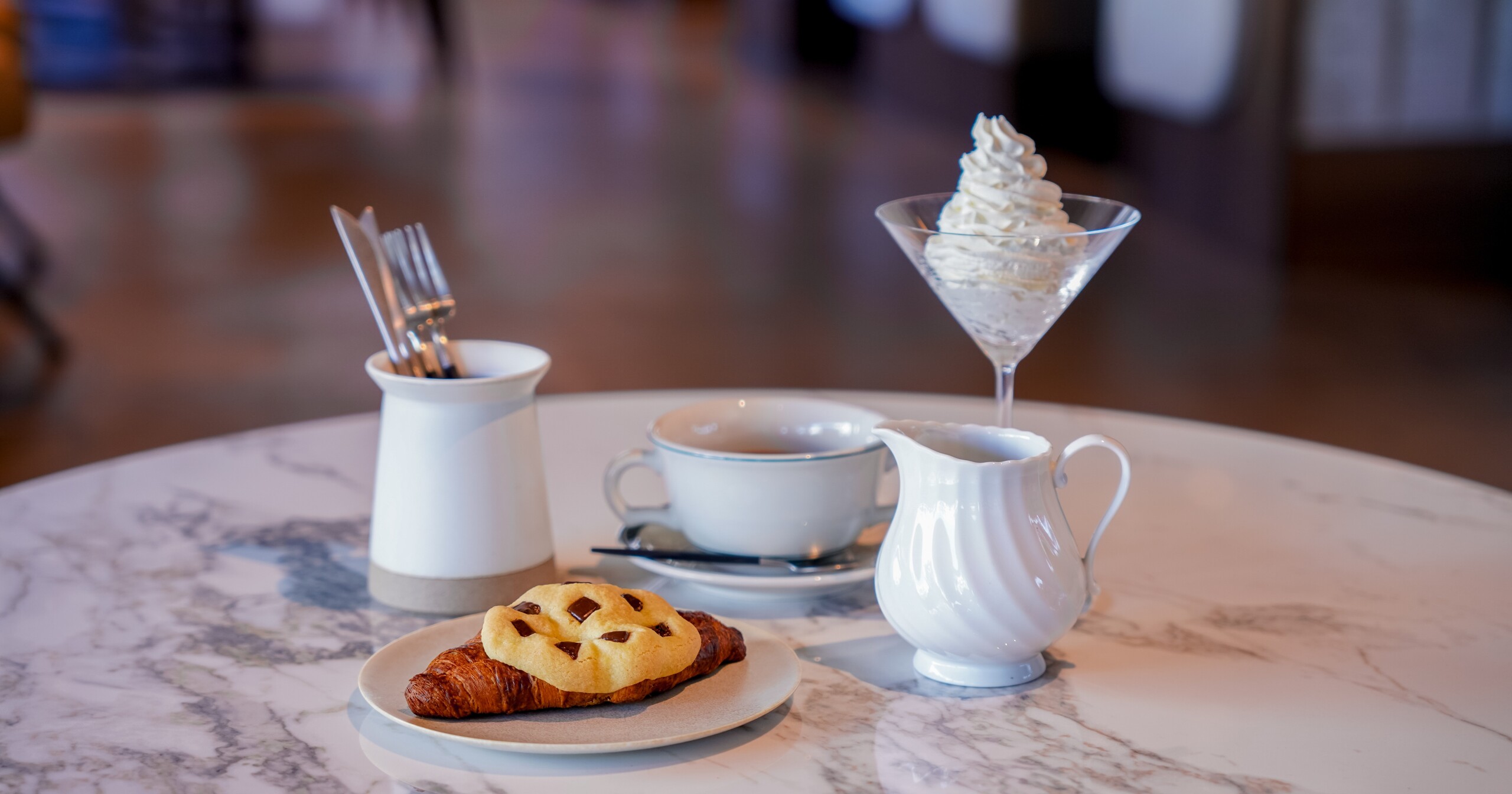 シグネチャーメニューであるクロワッサンをホットチョコレートにディップして食べる“ちょっと贅沢”なフランス式の食べ方の『ショコラショー』を始め、こだわりのカフェメニューをご用意しております。
