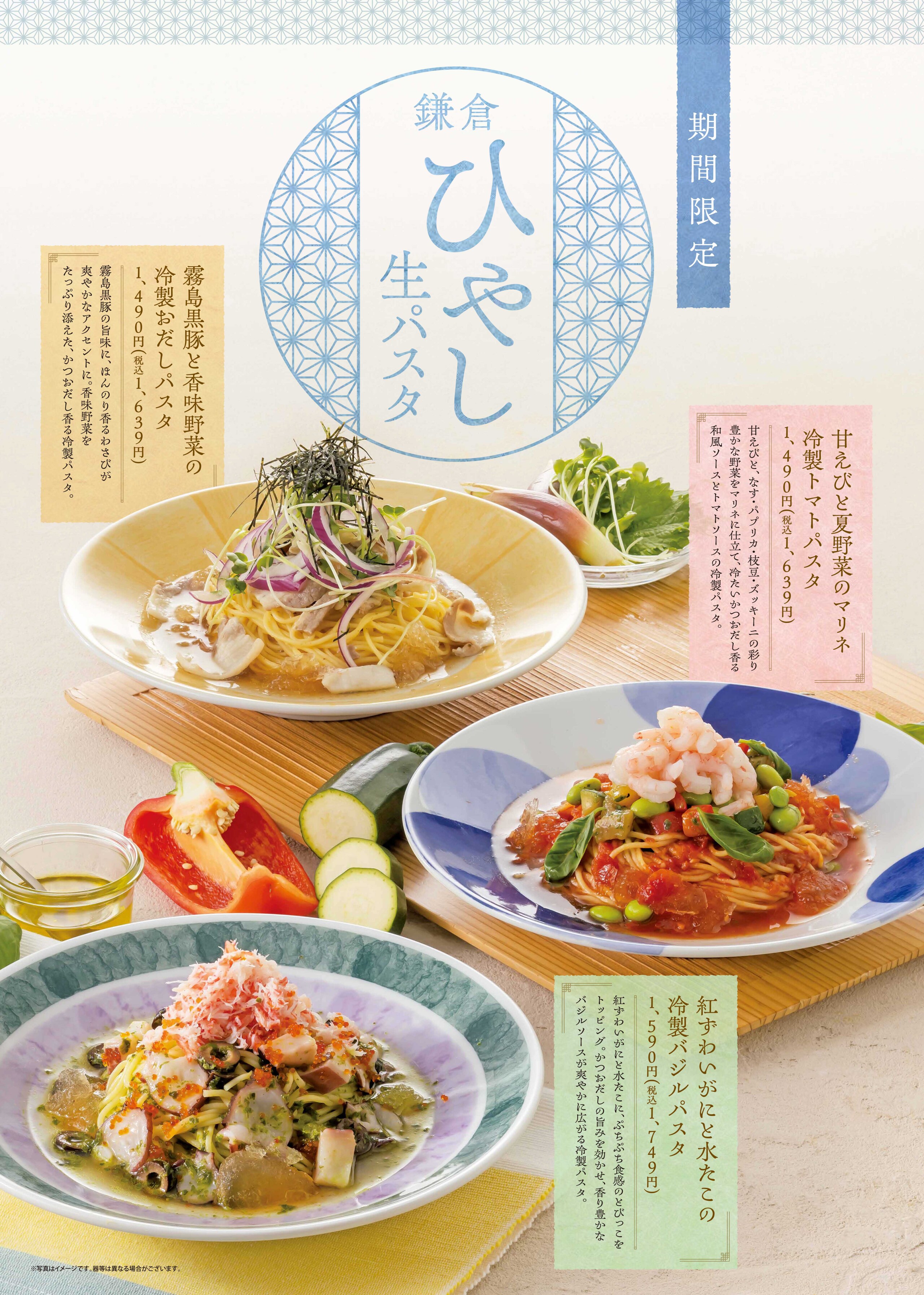 ◆涼を味わう、生パスタの贅沢時間。旬の素材とおだし香る冷製ソースで夏だけのひと皿を♪ ※2025年6月12日より全国の鎌倉パスタにて販売を予定しております。(ルミネエスト店を除く)※仕入状況により品切れとなる場合がございます。ご来店の際はスタッフまでご確認ください。
