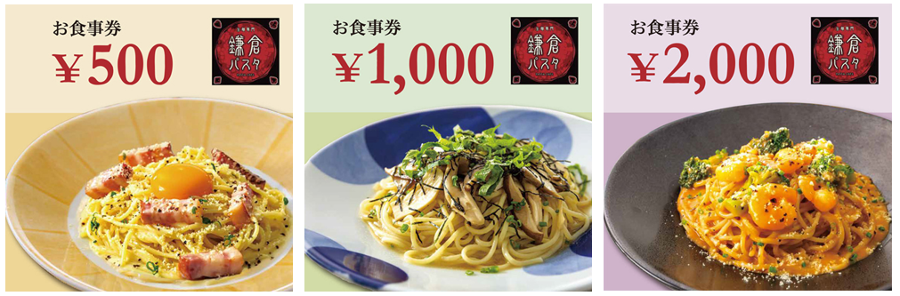 ◆ 最高のひとときを「あのひと」へ 鎌倉パスタeギフトは、全国の鎌倉パスタ・ぎをん椿庵にてご利用いただける、デジタルお食事券です。LINEやメールなどを使って、いつでも気軽にギフトとして贈ることができます。 楽天市場(楽券)で送る 楽天市場(楽券)のご利用はこちら▼ https://item.rakuten.co.jp/rakkenshop/c/0000000025/?s-id=rakken_top_pc_shop_list_rakkenshop_kamakurapasta ◆ LINEギフトで送る LINEギフトのご利用はこちら▼ https://mall.line.me/ch/shop/839092 LINEギフトとは?|LINEギフト 公式サイト LINEギフト(LINE GIFT)は、LINEでつながっている友だちにギフトをプレゼントできるサービスです。LINEでつながっていれば住所を知らなくてもOK。誕生日やちょっとしたお礼などに、ギフトカードを添えて様々なシーンで気軽にプレゼン https://linegift.line.me/about/ ◆メールやSNS等で送る 鎌倉パスタの鎌倉パスタeギフトを贈る | カジュアルギフトのgiftee(ギフティ) 鎌倉パスタの鎌倉パスタeギフトをgiftee(ギフティ)ではオンラインで手軽にギフトとして贈ることができます。ギフト詳細では、送る方法、チケットの利用方法と期限、交換できる店舗についてなど、詳しくご案内いたします。 https://giftee.com/items/5265