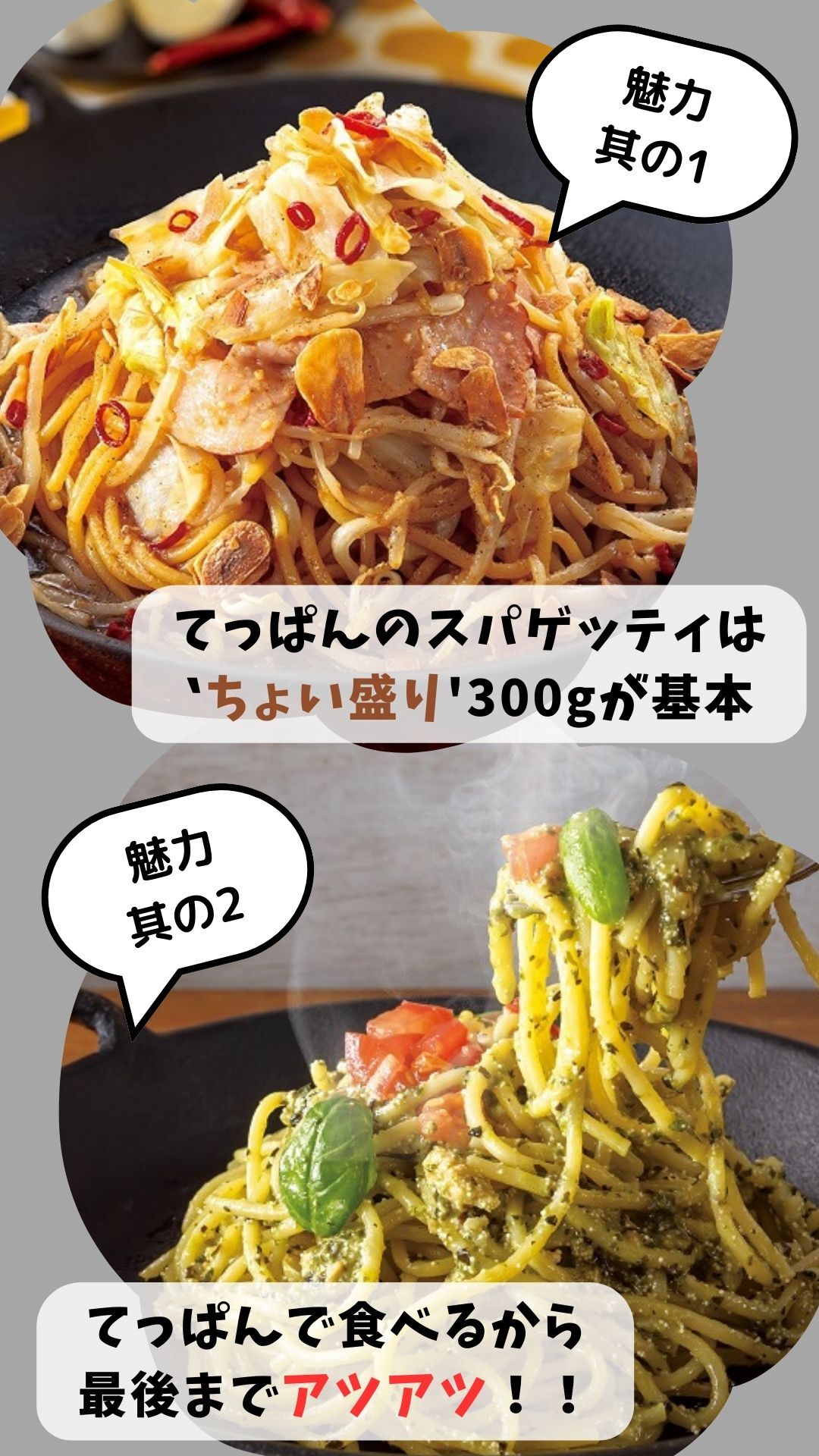 ※「てっぱんのスパゲッティ阪急サン広場地下通り店」では一部お取り扱いのないメニューがございます