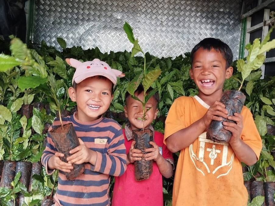 2024年同様に1万本の苗木を進呈。写真はクホ族農家の子どもたち。