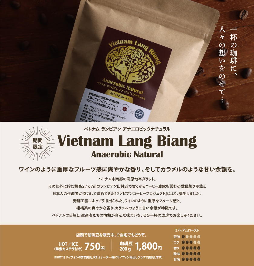 ベトナムの自然と、生産者たちの情熱が育んだ味わいを、ぜひ一杯の珈琲でお楽しみください。