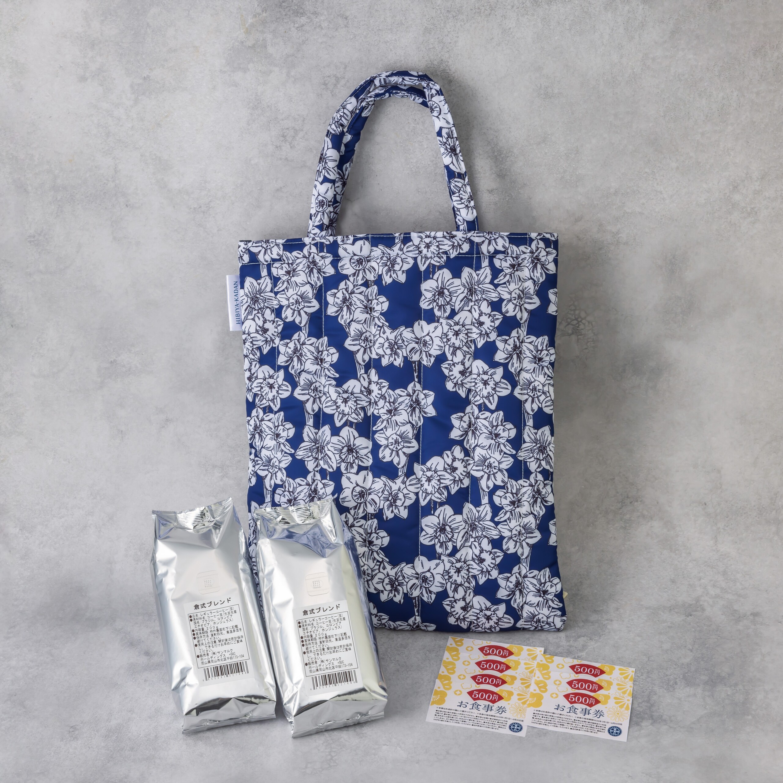 人気の珈琲豆3種に加え、店舗で使えるお食事券5,000円分入り。珈琲豆は味わいの異なる3種類をご用意しました。おうち時間にゆっくりとお楽しみくださいませ。10枚のお得なお食事券が付いているので、ご家族やご友人とのカフェ利用にもおすすめ。