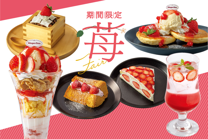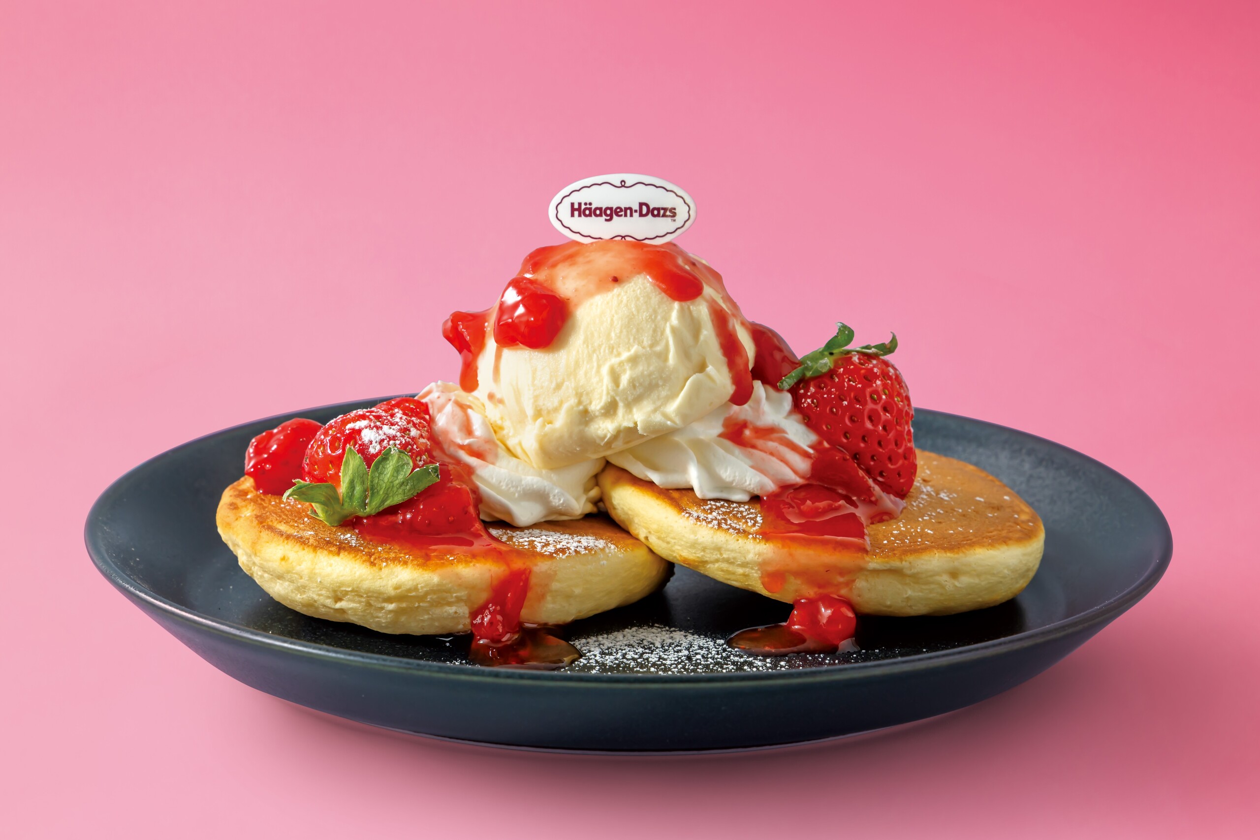 また、苺のホットケーキと苺パフェにはハーゲンダッツ バニラアイスクリームを使用。