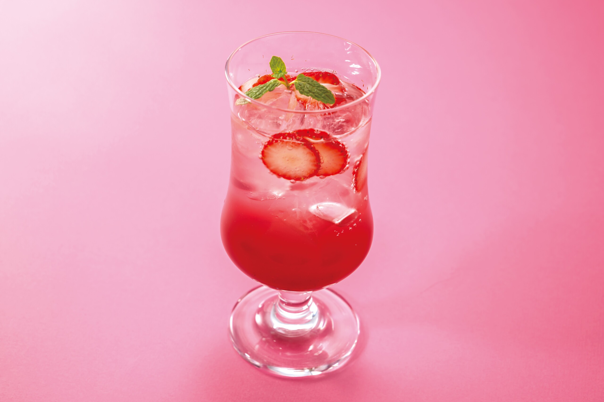スライスした苺をたっぷり浮かべた苺のソーダ。ふんわり広がる苺の甘酸っぱさと炭酸の爽やかさ。見た目も味わいも華やかな、春だけの特別な一杯です。