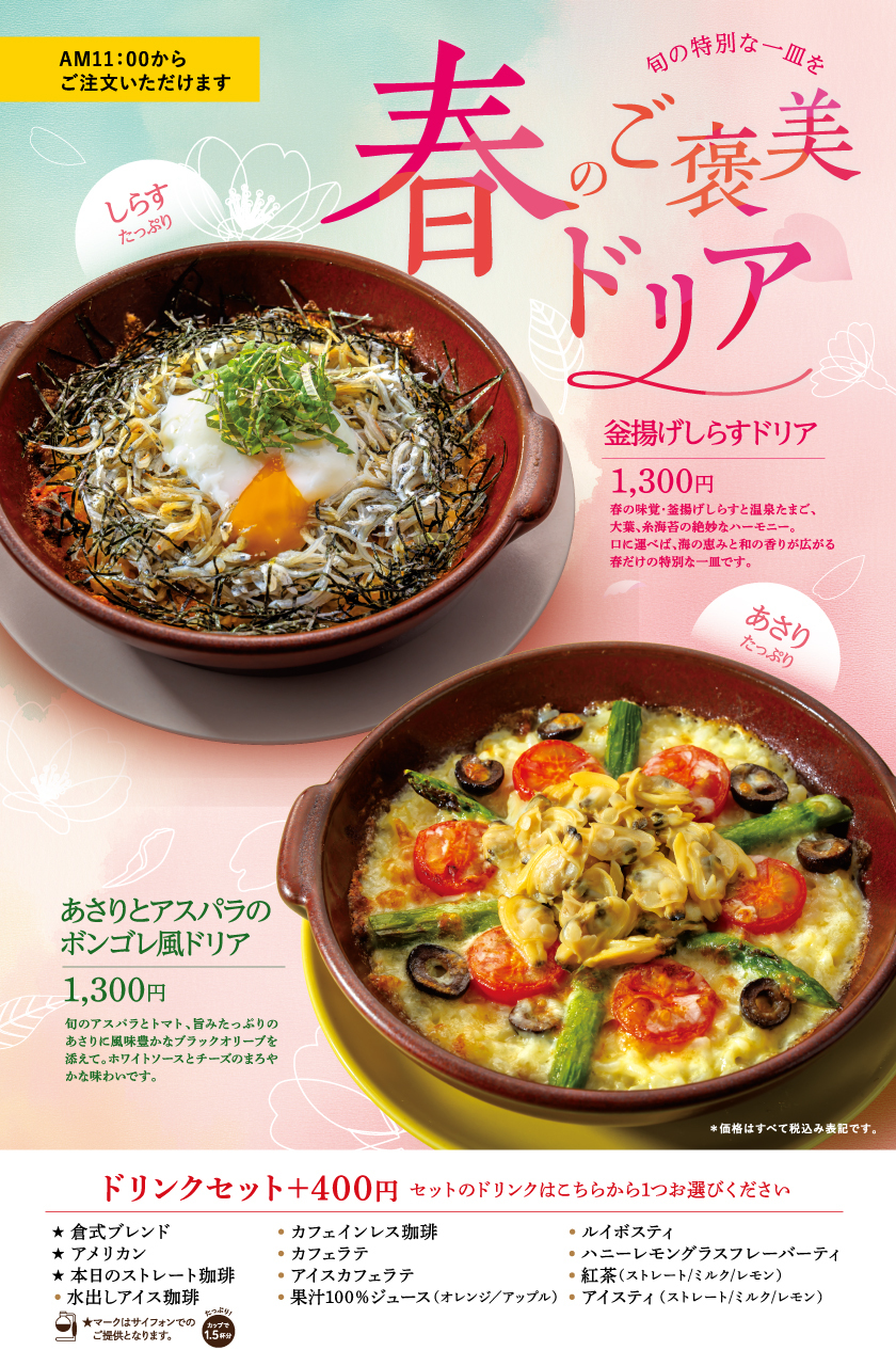 旬の素材を使用した、春限定のドリアメニュー。