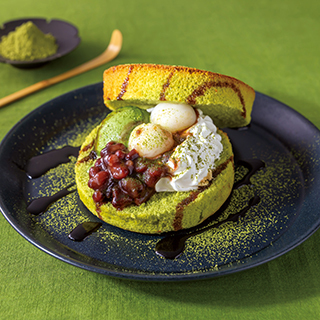 窯で焼き上げたふわふわの抹茶ホットケーキに、