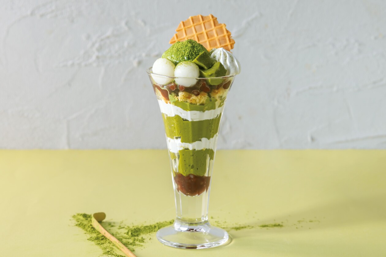和の旨みと濃厚ながらすっきりとした抹茶の風味、多彩な食感が楽しめる初夏期間限定のパフェ。