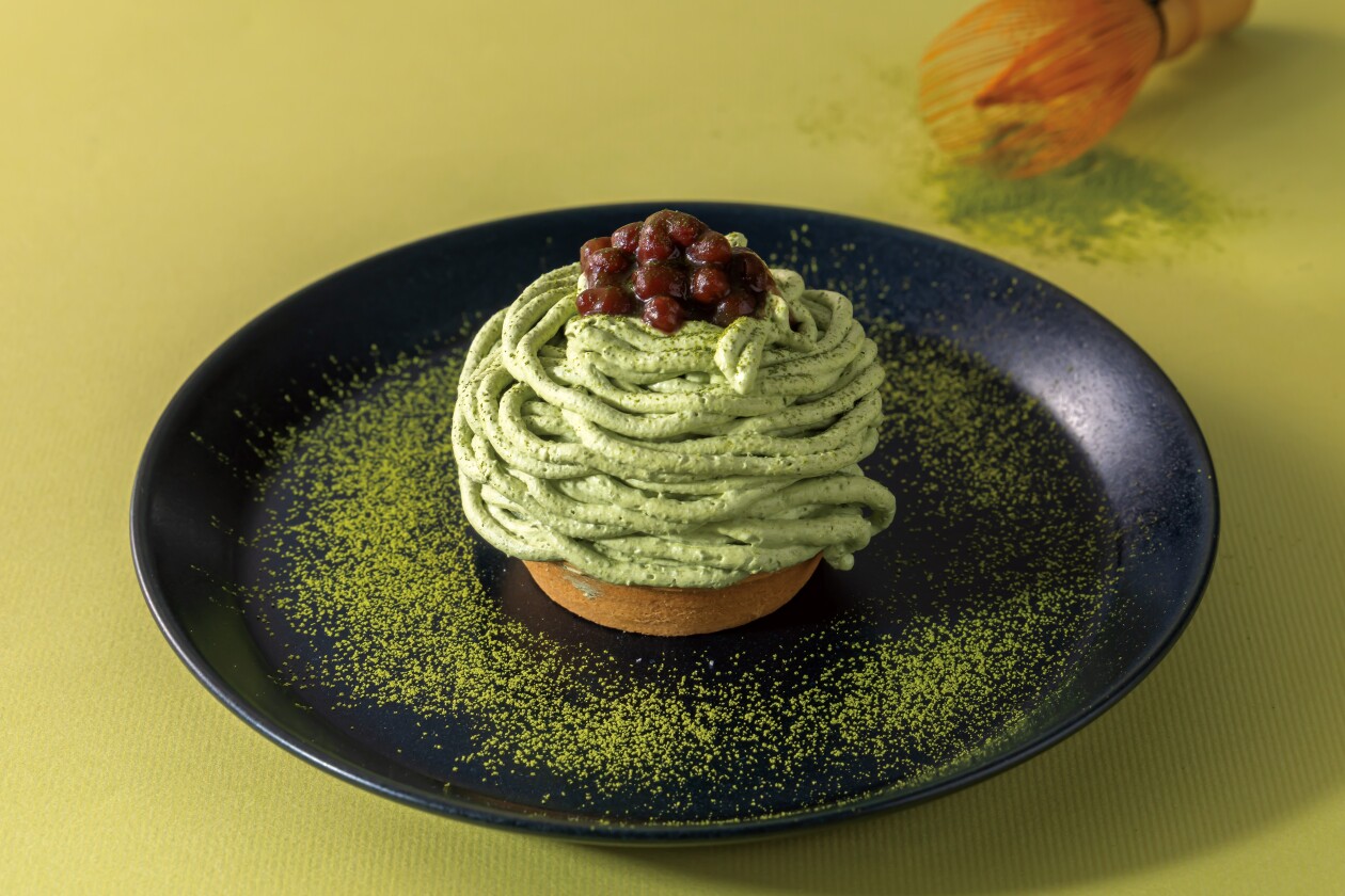抹茶ゼリーやあずきを求肥で包んだ大福に抹茶クリームをたっぷりと絞ったモンブラン。