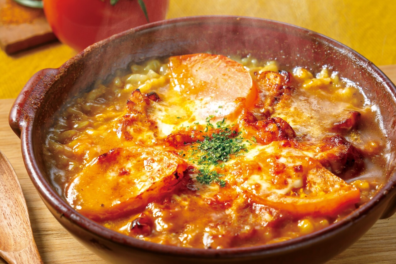 スパイス香るケイジャンチキンと、コク深い特製カレーを組み合わせた初夏限定のカレードリア。オーブンで香ばしく焼き上げたチーズとジューシーなチキンの旨みが絡み合うエスニックな一皿です。