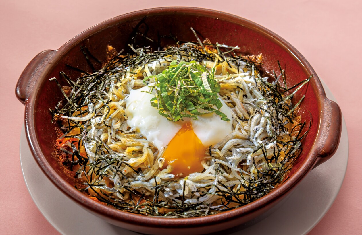 春の味覚・釜揚げしらすと温泉たまご、大葉、糸海苔の絶妙なハーモニー。口に運べば、海の恵みと和の香りが広がる春だけの特別な一皿です。