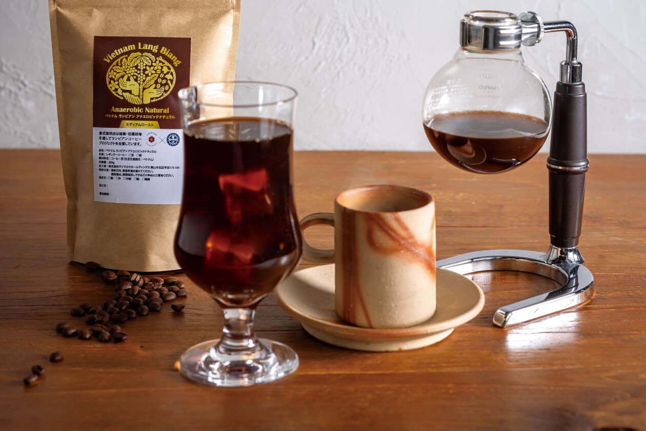 サイフォンで抽出後、ホットはカップ1.5杯分・アイスはグラスでの提供となります。