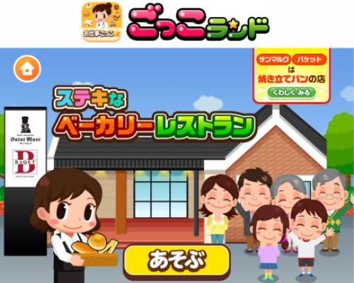 「ステキなベーカリーレストラン」は、「やきたてパンをつくろう!」と「パンをくばろう!」で構成され、パンの魅力を楽しく学ぶとともに、ベーカリーレストランに親しみを持っていただけるゲームです。