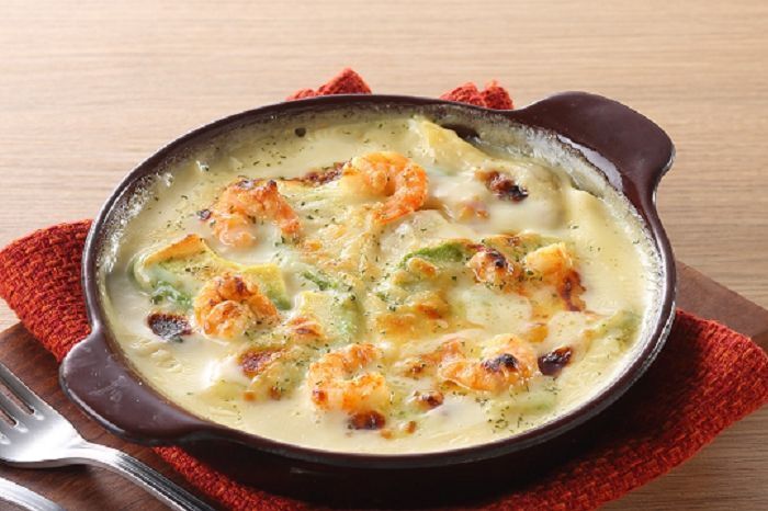 海老のプリっとした食感とアボカドのなめらかさが楽しめるクリーミーなグラタンです。
