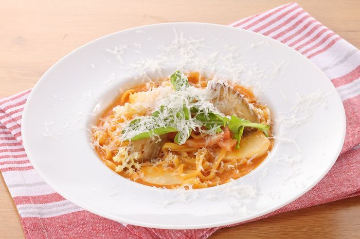 ベーコンと根菜のイセエビ風味のリングイネパスタ