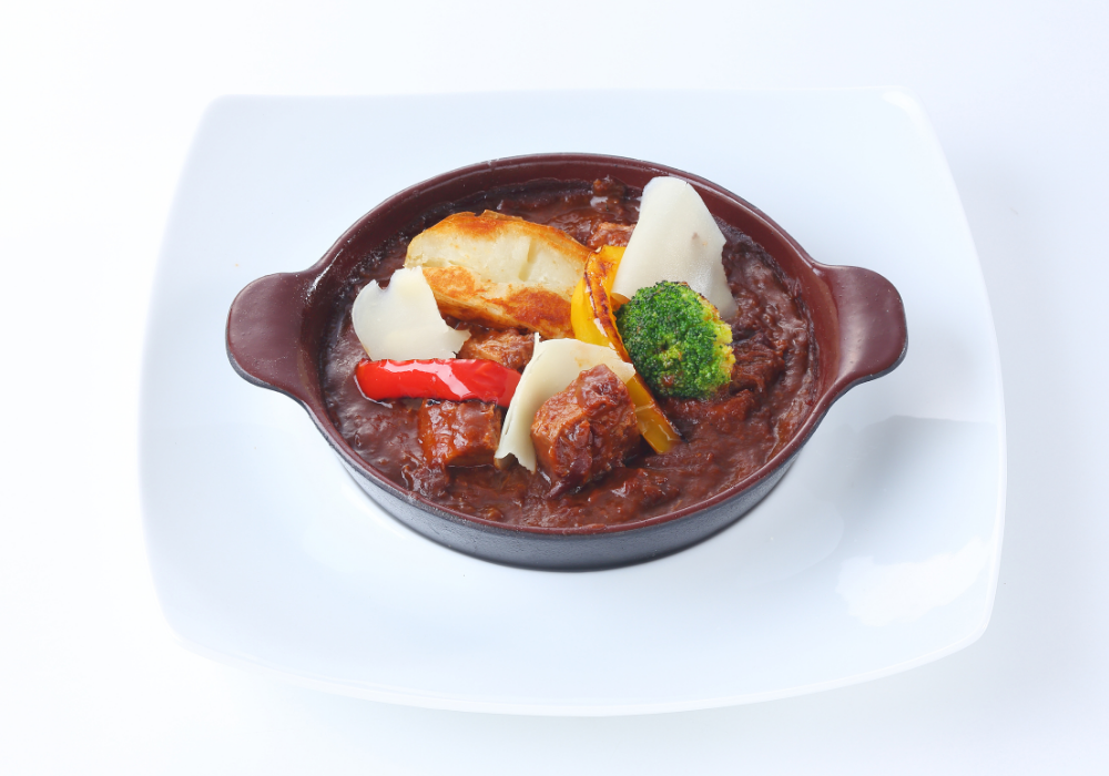 赤ワインの風味が溶け込んだ濃厚でコクのあるビーフシチュー。一口ごとに広がる深い味わいをご堪能ください。