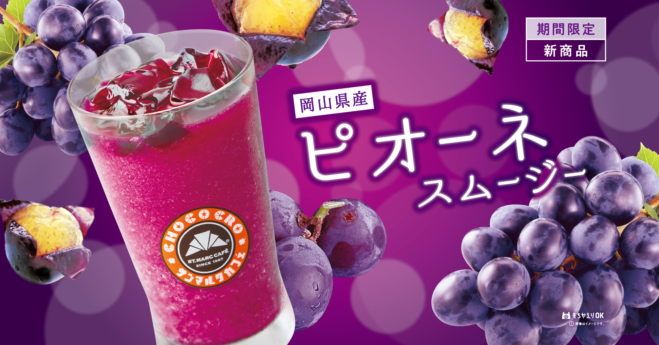 サンマルクカフェでは季節ごとに旬の果実を使用したスムージーを展開しております。この度、夏季限定で販売したシャインマスカットを使用したスムージーの人気をうけ、新たにぶどうの一種であるピオーネを使用したスムージーを販売いたします。