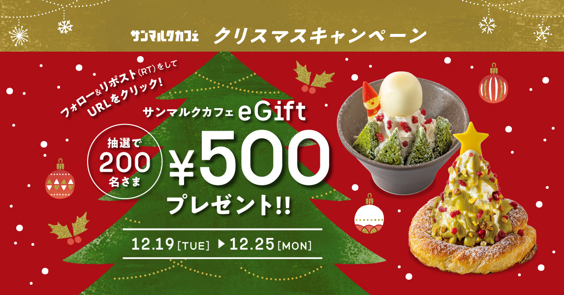 公式Xにて500円分のサンマルクカフェデジタルギフト(eGift)が抽選で200名さまに当たるキャンペーンを実施中です🎅