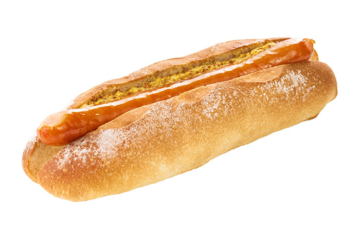 あつあつふんわりのフランスパンに、食べ応え抜群のジューシーウインナーのプレーンドッグ。ピリッと辛いマスタードのアクセントが抜群です!