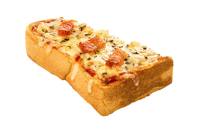 食べ応えのあるごろっとベーコンとバジルの香りが際立つピザトースト。トマトソースに相性抜群のとろ〜りチーズが食欲をそそります。