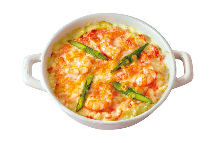 ぷりぷりエビとアスパラの明太クリームドリア