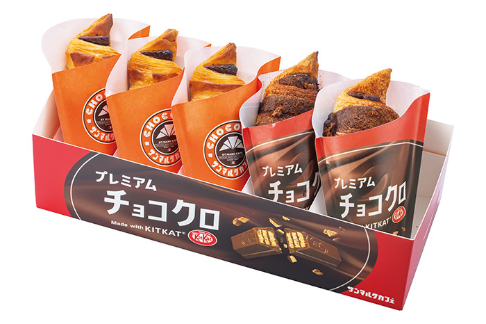期間限定の「プレミアムチョコクロ Made with KITKAT®」×2、定番の「チョコクロ」×3が入った、2種のチョコクロを楽しめるセットです。